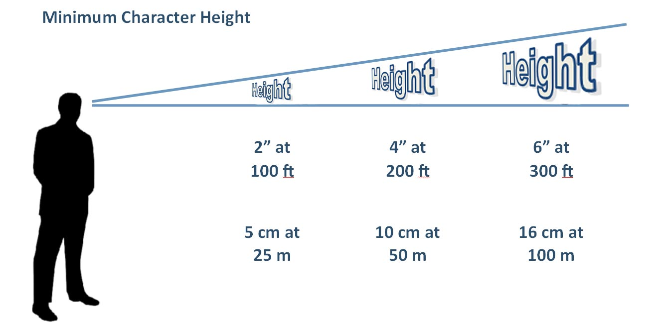 LED tabelaların en önemli faktörü görüş mesafesidir. Tabelanız arabada hızlı giden insanlar tarafından uzun mesafeden görülecekse, okunabilir hale getirmek için büyük bir karakter boyutuna ihtiyacınız vardır. Bir mezar kuralı olarak, okunabilir hale getirmek için her 100 ft'lik görüş mesafesi için en az 2 inç karakter yüksekliğine ihtiyacınız vardır. Görüntü ve video destekli tam renkli tabela için, izleyici üzerinde daha iyi etki yaratmak için daha büyük boyuta ihtiyacınız olabilir.