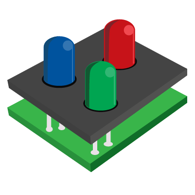 Delik boyunca ledler, devre kartının içinden çıkan kablolar ile monte edilir ve daha uzunmuş gibi görünür. her led bir tek renklidir kırmızı, yeşil veya mavi.