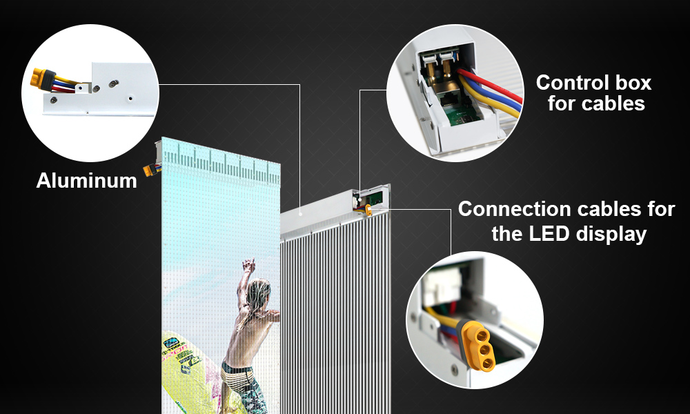 Ekranlar şeffaf plaka ile, güç kutuları ise profiller aracılığıyla birleştirilir.