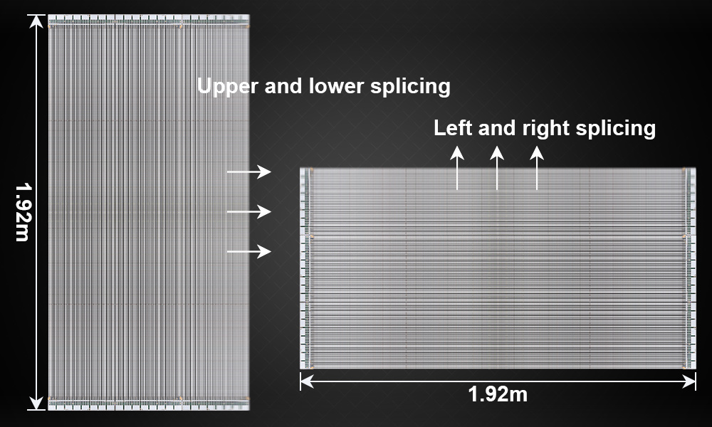1,92 metrelik ekran yüksekliği veya genişliğine ve diğer yönde sınırsız birleştirmeye ulaşabilen sola ve sağa veya yukarı ve aşağı birleştirilmiş