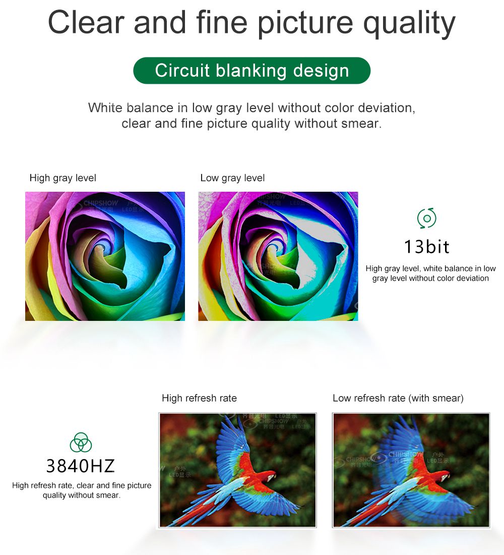 2 İyi görüntü kalitesi: hayalet çizgileri etkili bir şekilde ortadan kaldırmak için ön kenar körleme devresini kullanır; düşük gri seviyesinin altındaki beyaz dengesiyle, renk sapması olmadan iyi görüntü kalitesi elde edilir;