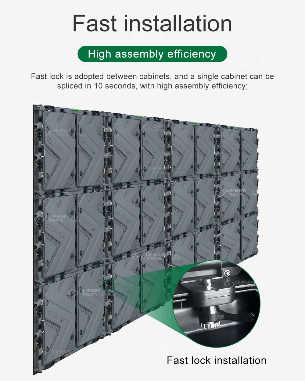 1 Mükemmel düzlük, deformasyona karşı yüksek direnç: C-Shine-Plus (GOB) serisi, iyi düzlük ve deformasyona karşı iyi direnç gösteren yüksek mukavemetli alüminyum alaşım sınıfı: ADC-12 döküm alüminyum kabinleri benimser; ekran sıklıkla monte edilip sökülse bile kabinler yine de düz kalabilir;2 Pratik tasarım: Pratik ve basit olma ilkesini izleyen dolaplar, kullanışlı hızlı kilitler ve geniş ve sağlam kulplar gibi minimalist bir tasarıma sahiptir;3 Manyetik modül: Modüllerin ön ve arka bakımını destekler; dolaplar arasındaki manyetik konum sayesinde ekran hızlı ve hassas bir şekilde monte edilebilir.4 Yüksek koruma performansı: Modüllerin kullandığı GOB kapsülleme teknolojisine ek olarak, dolaplar çarpışma önleyici çıkıntı çıkıntıları ve koruyucu köşelerle donatılmıştır; böylece ekranın yüzeyi son derece koruyucu olup, kurulum ve nakliye sırasında hasarı büyük ölçüde önler;5 C-Shine-Plus (GOB) serisi, asılı kurulumu ve zemin kurulumunu destekler; her türlü kiralama kurulumu durumu için ekonomik ve son derece verimli bir ekran çözümü olarak, akıllı, dijital görsel ekran çözümlerine ihtiyaç duyan çok çeşitli sektörlerdeki (örneğin enerji, askeriye, kamu güvenliği, BT, finans ve adalet) müşteriler arasında popülerdir;