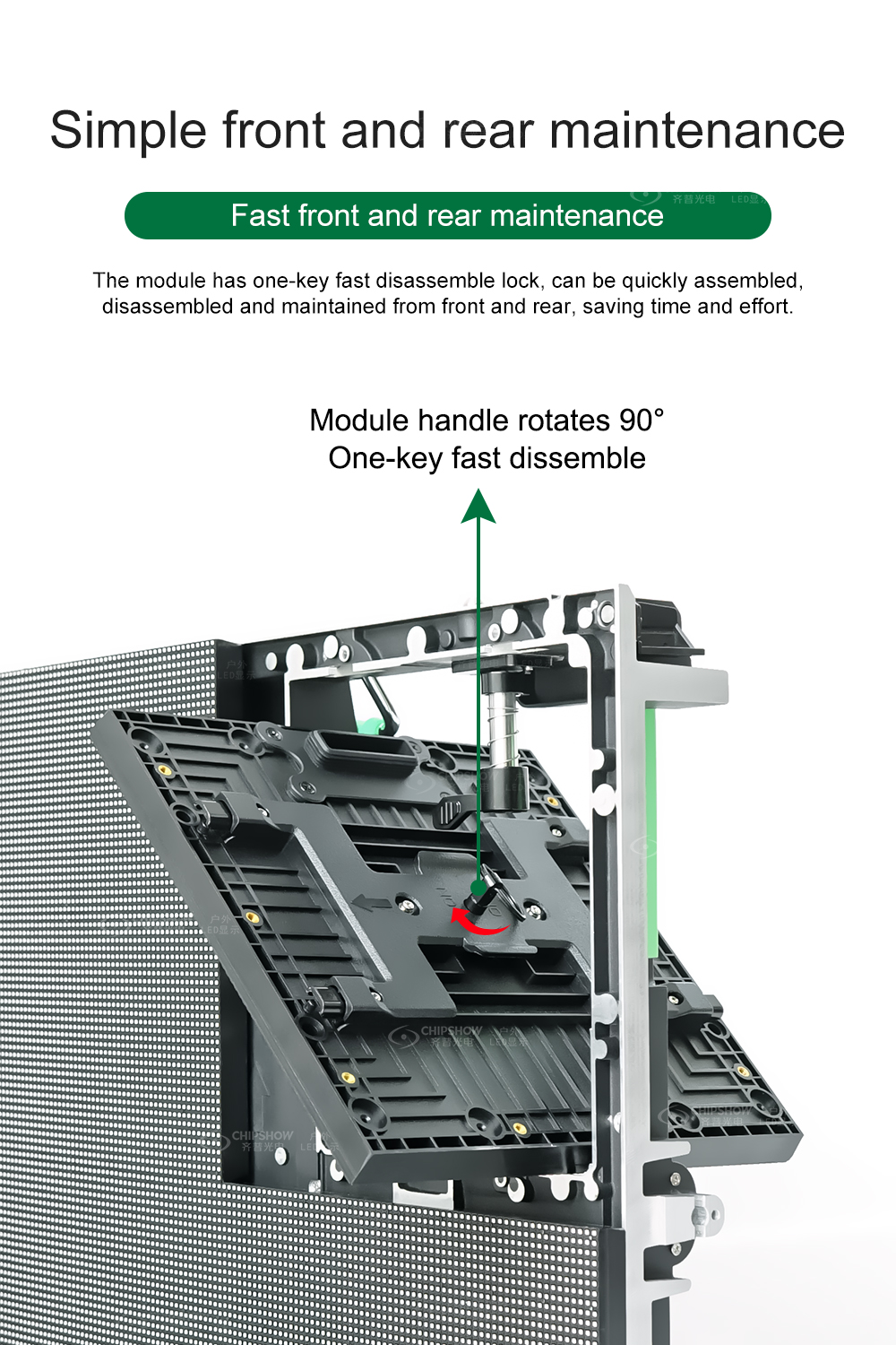 1. Düzlük: Deformasyon olmadan sık sık monte edilebilen ve sökülebilen ADC12 yüksek mukavemetli döküm alüminyum kabin, iyi düzlük. 2. Pratik: Basit ve pratik tasarım, sağlam tutamak, kullanışlı hızlı kilitleme, basit ve pratik. 3. Manyetik tasarım: Manyetik modüle önden ve arkadan bakım yapılabilir; dolaplar arasındaki mıknatıs doğru bir şekilde konumlandırılıp monte edilmiştir ve kiralık kurulum için oldukça uygun maliyetlidir. 4. Yüksek koruma: Köşe koruması + çarpışma önleyici patron; Taşıma ve kurulum sırasında zarar görmemesi için çevredeki LED'lerin tam otomatik korunması; 5. İkili yedekleme: Aşağıdaki sorunları etkili bir şekilde çözmek için ikili elektrik ve sinyal yedekleme seçilebilir: siyah ekran, görüntü hatası ve dengesiz resim. 6. 5000m²'nin üzerinde küresel satış hacmi. Hazır stok ve hızlı teslimat. 7. Çoklu uygulamalar: Zemine dayalı montaj ve asılı kurulum gibi birden fazla kurulum yöntemini destekleyin ve enerji, adalet, askeri, ulaştırma, kamu güvenliği, finans, BT vb. alanlardaki müşterilere genel görselleştirme çözümleri sunmaya odaklanın , zeka, bilişim ve dijital LED ekran sistemleri.