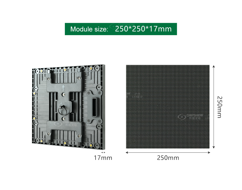 Özellikler: 1 Yüksek hassasiyetli döküm alüminyum dolaplar: dolaplar oldukça hafif ve incedir; (her dolabın ağırlığı 8 kg'dan azdır ve dolap kalınlığı 79 mm'den azdır); 2 İyi uyumluluk: C-Rock serisi iki kabin boyutunda (500mm*500mm ve 500mm*1000mm) gelir ve kullanıcıların montaj ihtiyaçlarını karşılamak için farklı boyutlardaki birden fazla kabin yukarı ve aşağı doğru birleştirilebilir; 3 Hızlı söküm: Tüm dolaplar, hızlı söküm kolaylığı için hızlı çıkarma kontrol kutuları ile donatılmıştır; 4 Ark kilitlerle birleştirme (isteğe bağlı): -10° ila 15°'yi destekleyen kavisli bir ekrana dolapları birleştirmek için ark kilitleri kullanmayı seçebilirsiniz; 5 Ön servis: C-Rock serisi, ön bakımı destekleyen manyetik modülleri benimser; 6 Her dolap, hareket esnasında titreşimden kaynaklanan montaj hatalarını önlemek için 2 adet sabit vida ile donatılmıştır; bu, uygulamanızın uzun ömürlü olmasını ve performansını garanti eder; 7 Kolay kullanım: Tek bir kişi bile dolapların hızlı kurulumunu gerçekleştirebilir; kurulum maliyetlerini büyük ölçüde azaltmaya yardımcı olur; 8 Sessiz çalışma: Modüller ısıyı dağıtmak için fan kullanmaz; çalışırken gürültü seviyesi her zaman 40db'nin altındadır; canlı ses-görüntü efektlerini etkilemez; 9 Büyük sahne arka plan ekranları olarak uygundur: C-Rock serisi LED ekranlar, DSLR arka plan efektlerine sahiptir ve yüksek yenileme hızı, gölgelenme veya titreme olmadan kameranın 1/3000 saniyeye kadar deklanşör hızına yetişebilir; 10 İç ve dış mekan kullanımına uygundur: Sahne performansları, konferanslar ve etkinlikler için kapsamlı bir LED ekran çözümü olan C-Rock serisi, iç mekan kullanımı için 1,95 mm, 2,604 mm ve 3,91 mm piksel aralıklarında mevcuttur; ve dış mekan kullanımı için C-Rock serisi, 2,604 mm, 2,97 mm, 3,9 mm ve 4,8 mm piksel aralıklarında mevcuttur;