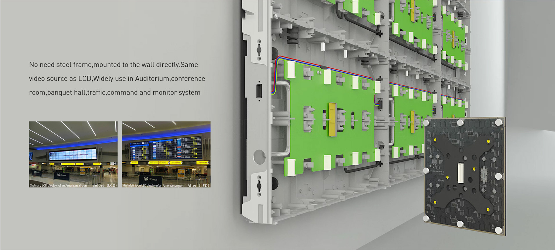 Çelik çerçeveye gerek yok, Doğrudan duvara monte edilir, LCD ile aynı video kaynağı