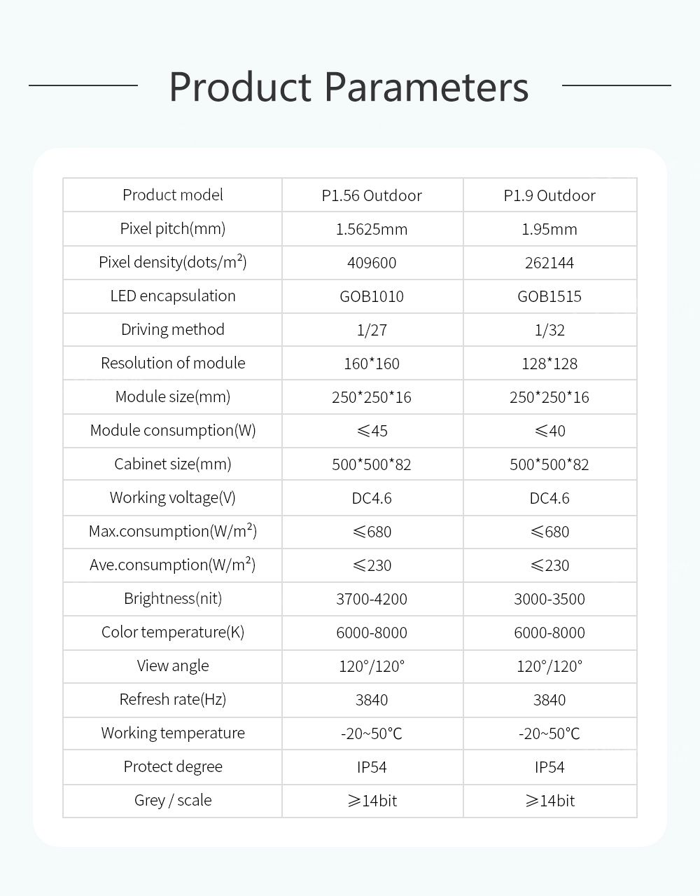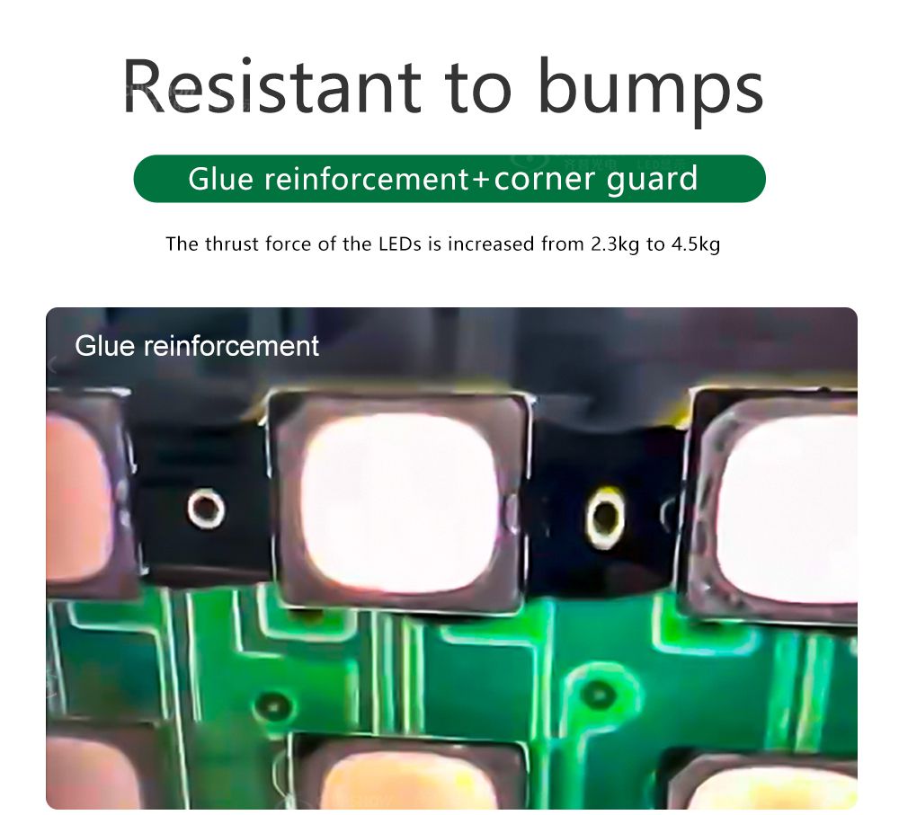 4 Yüksek koruma performansı: Modüllerin kullandığı GOB kapsülleme teknolojisine ek olarak, dolaplar çarpışma önleyici çıkıntı çıkıntıları ve koruyucu köşelerle donatılmıştır; böylece ekranın yüzeyi son derece koruyucu olup, kurulum ve nakliye sırasında hasarı büyük ölçüde önler;