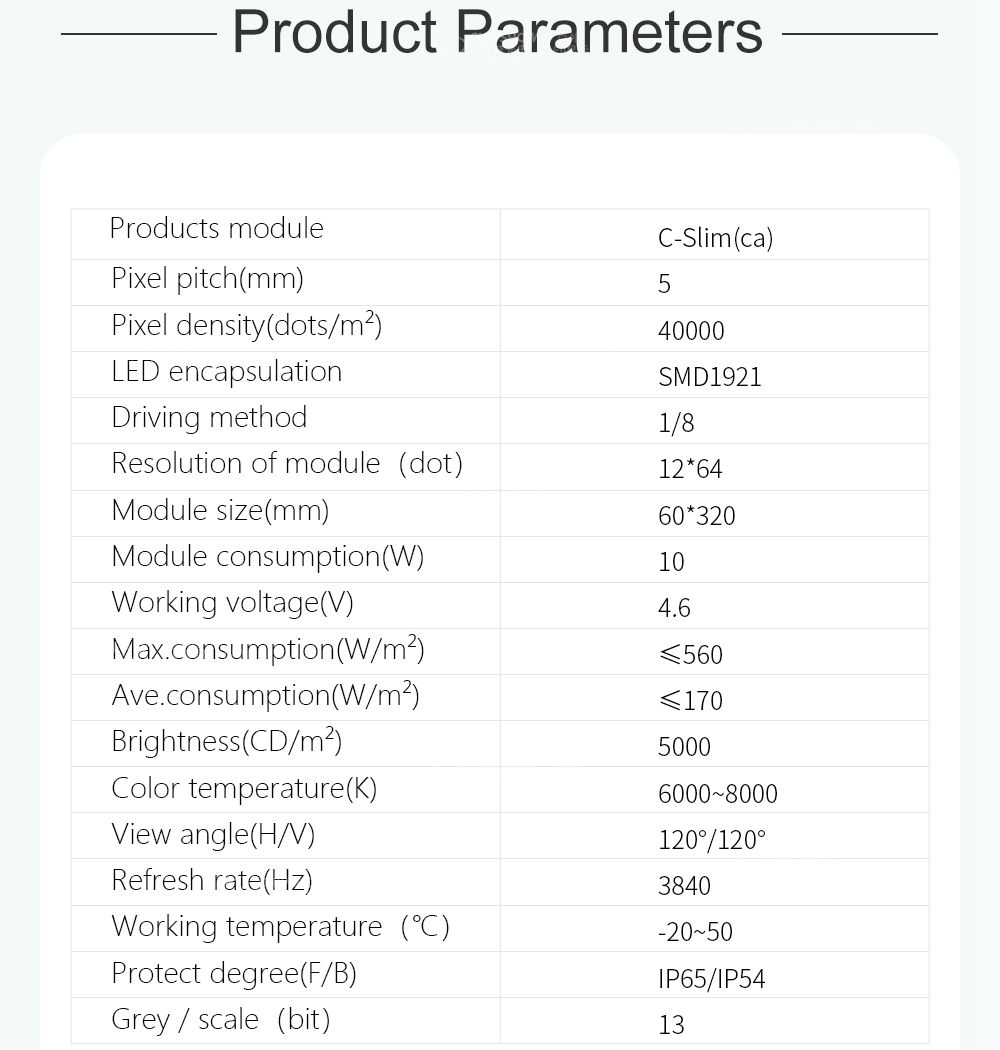 6 Yüksek koruma seviyesi: LED modülleri tamamen kapalıdır ve her modülün ön ve arka tarafı IP65 derecesine ulaşmıştır;