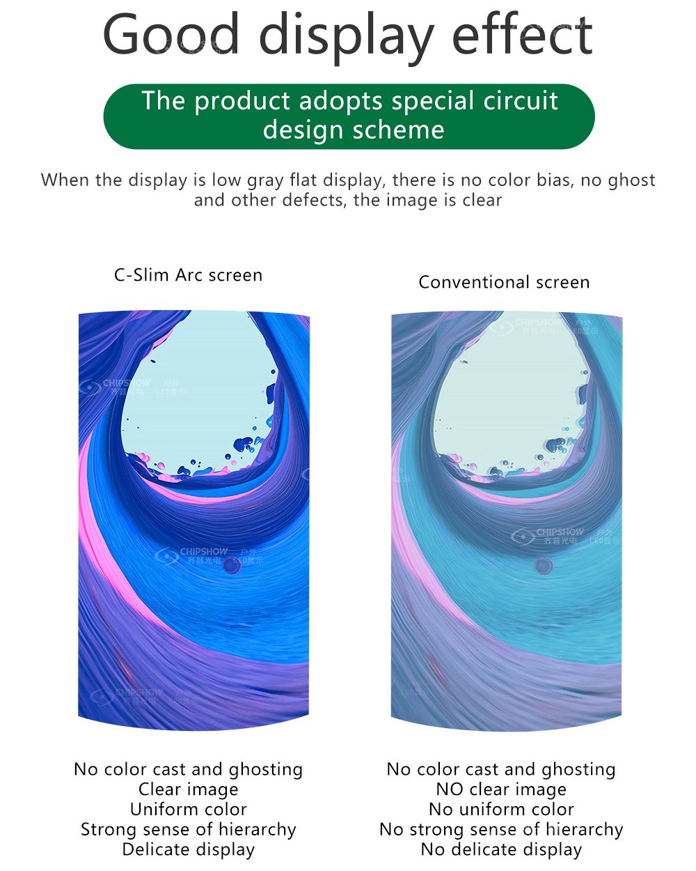 2 Mükemmel görüntü efektleri: Düşük gri tonlama ayarlarında bile ekranda renk sapması ve hayalet gölgeler gibi yaygın görüntü kalitesi kusurları yoktur;