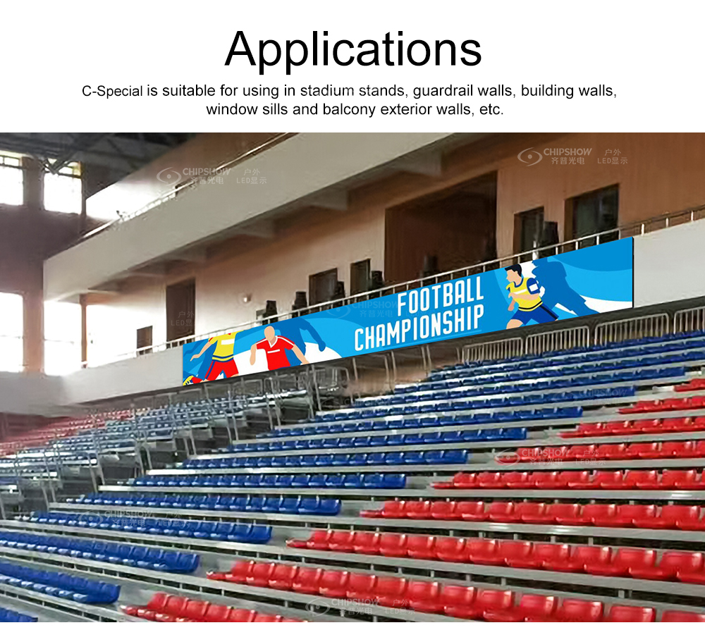 6 The C-Special stadium series is particularly used as a display solution for stadium walls, and stands around stadiums;