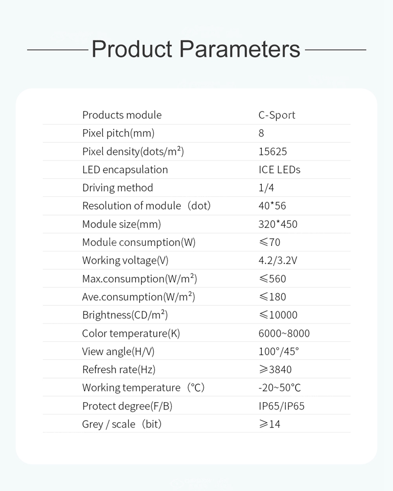 ◙ Ekran yumuşak maske ve yastık korumasıyla birlikte gelir, böylece sporcular ve LED ekran mükemmel şekilde korunur.