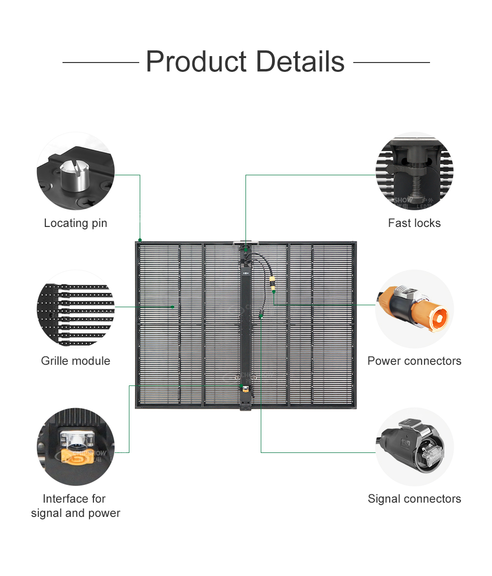 4 Yüksek havalandırma: ızgara şeklindeki LED modülleri, rüzgarın ızgaralar arasındaki boşluklardan doğrudan geçmesini sağlar; bu sizi çelik yapının iyileştirilmesinde kullanılması gereken önemli bir maliyetten kurtaracaktır;