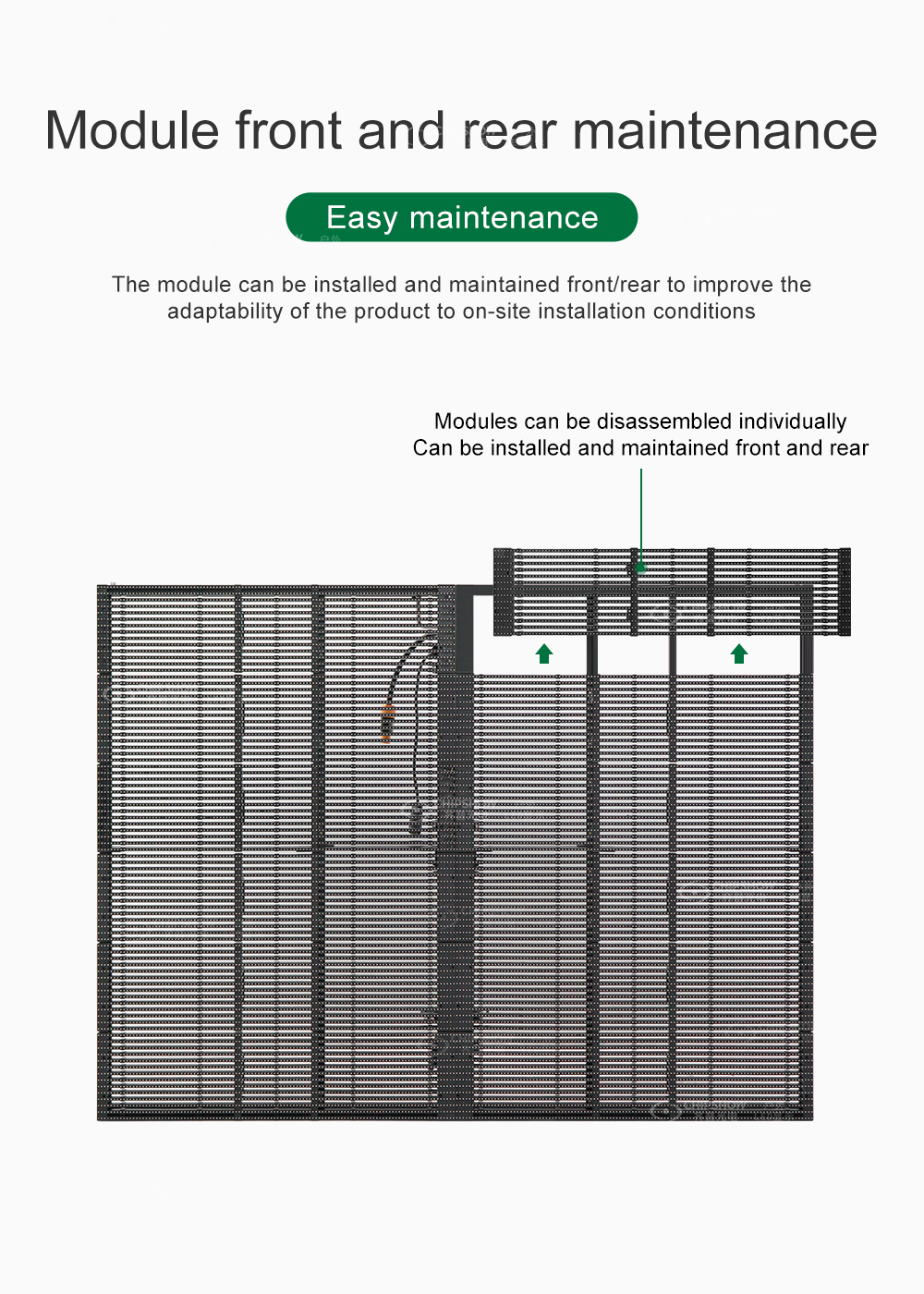 5 Ön-Arka bakım: Ekranı önden ve arkadan kurabilir ve bakımını yapabilirsiniz, bu nedenle yerinde kurulum koşullarına yönelik çok gevşek bir gereksinim vardır;
