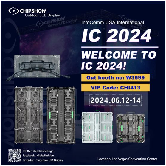 Chipshow LED Display, Çin'in önde gelen LED ekran üreticilerinden biridir ve tüm ürün yelpazesini (Dış Mekan, İç Mekan, Kiralık, Sahne,COB, Şeffaf, Spor) 12 Haziran - 14 Haziran 2024 tarihleri arasında Las Vegas InfoComm IC 2024'te fütüristik LED ekran çözümleri. Stand No W3599.