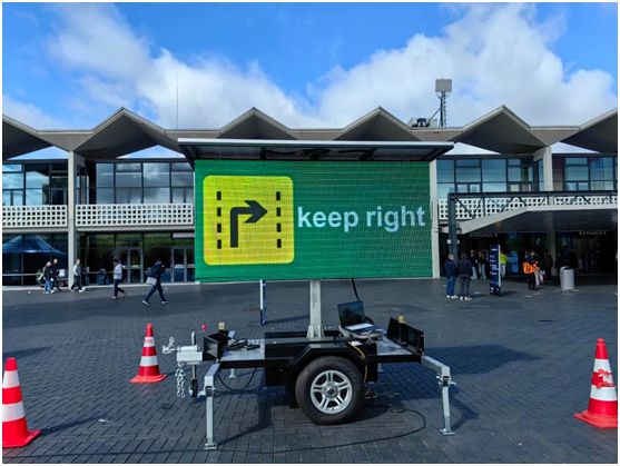 Bir başka yüksek profilli sergi ise güneş enerjisiyle çalışan araba ekranımız; Bu ekran, yüksek hareket kabiliyeti, uzun pil ömrü, yüksek parlaklık ve yüksek stabiliteyi bir araya getirerek trafik operasyonları için çok uygun hale getiriyor. Bu ekran düşük voltajlı güç kaynağı kullanır ve yüksek güçlü bir fotovoltaik dizi ve büyük kapasiteli bir pil ile donatılmıştır. Yüksek verimlilik ve enerji tasarrufu sağlayabiliyor ve tüm yıl boyunca yalnızca güneş enerjisiyle çalışabiliyor.