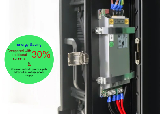 2. Enerji tüketimi ve güç kaynağı: Parlaklığı artırdıktan sonra C-Slim, fiyatı artırmadan malzeme ekleyebilir ve ortalama güç tüketimi 180 W/ ㎡'den az olan düşük enerjili dış mekan ekranları sınıfına girebilir .. Bunun nedeni, bu dış mekan ekranının, LED ekran için enerji tasarrufu sağlamak üzere ortak anot yapısının geliştirilmesine dayalı teknik bir çözüm olan ortak bir katot güç kaynağı şeması kullanmasıdır. R, G ve B çipleri için akım ve voltajı dağıtın. Akım önce lamba boncuğundan ve daha sonra ileri voltaj düşüşünü ve iletimin iç direncini azaltan IC'nin negatif elektroduna geçer. Etki. Ardından, güç kaynağının kararlılığını sağlamak için çift çıkışları otomatik olarak dağıtma işlevine sahip olan güç kaynağı için çift voltajlı bir güç kaynağı yöntemini benimsedik.