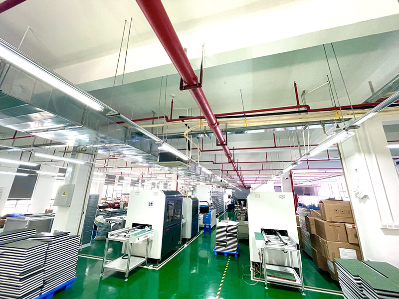 Üçüncü kattaki SMD atölyesi 750 metrekare, 6 Fuji ve Samsung otomatik yüksek hızlı mounter hattı, günlük 90 metrekare üretim kapasitesi ve aylık yaklaşık 2700 metrekare üretim kapasitesi ile; ürün kalitesini sağlamak için 10 tam sabit fırın hattına, 4 otomatik yeniden akış lehimleme hattına ve AOI tamamen akıllı 4 test ekipmanı hattına sahiptir.